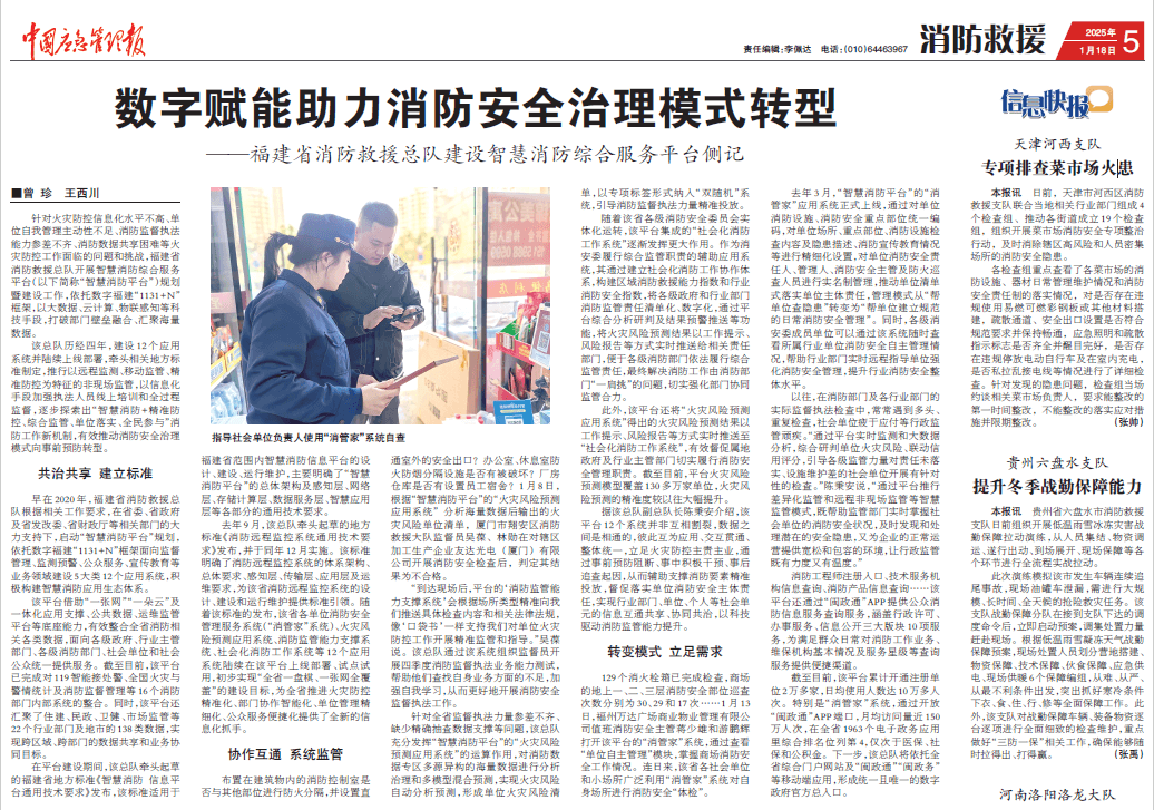 利用大数据、人工智能等技术,通过火灾风险预测分析等应用,实现消防精准监管,提升单位自主管理水平,促进安全治理模式向事前预防转型。